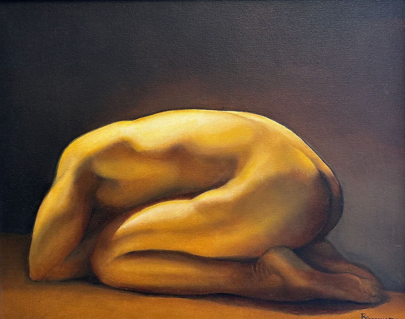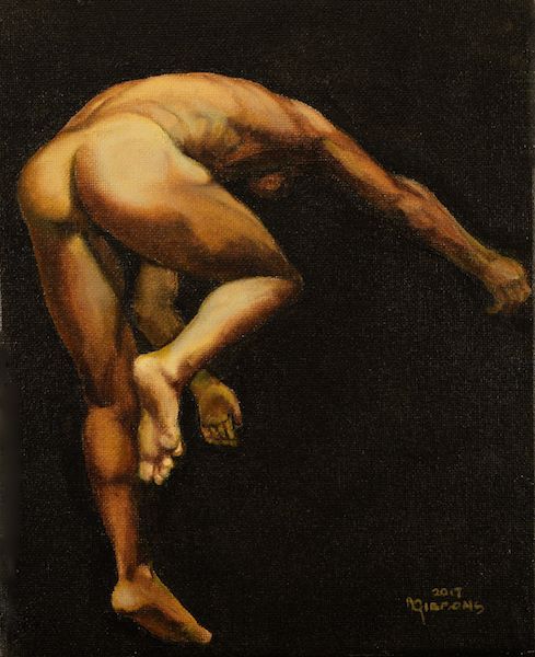 “Although I had my schooling in classical painting at the Art Institute of Chicago, I have always brought my architectural background into placing a figure in space. I attempt to go beyond the ‘academic nude’ which does not engage the viewer. The goal for my work is to become engaging by projecting a human sensation that we have all experienced. It could be escaping from something, being in a situation of precarious balance, introversion, tranquility, angst, pensiveness, or even the body as architecture.